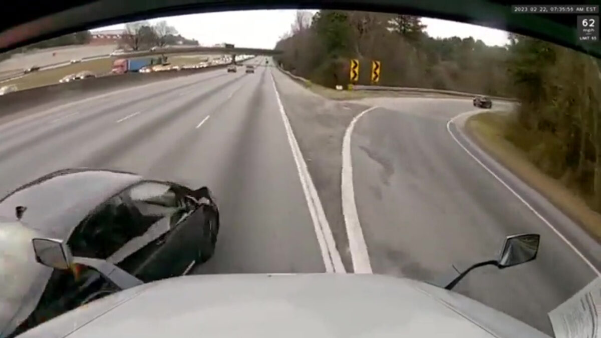 Nu hebben we hier al een heleboel verkeersidioten gezien, maar zo bont als deze afsnijdende mafkees het hier op de snelweg in Atlanta maakt zie je maar zelden. Wat een klapper, hoe het met de chauffeur is is onbekend.