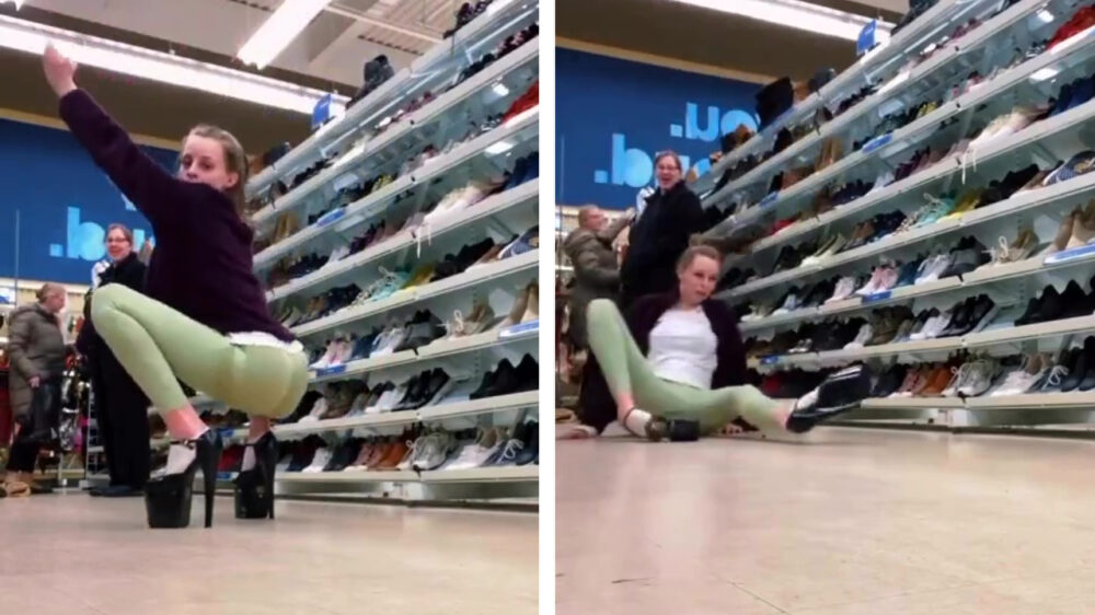 Influencer moet nog wel even oefenen op het dansen op hoge hakken