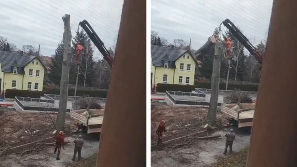 Je kunt veel geld betalen om wat professionals in te huren die je boom kappen, maar als je deze hoveniers zo bezig ziet dan had je het wellicht ook zelf wel kunnen doen.