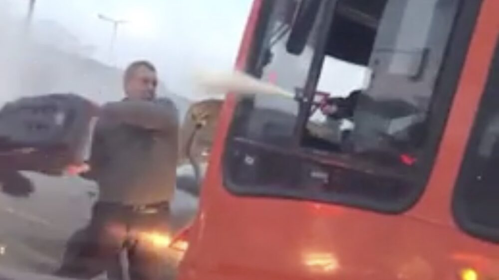 Een road rage wordt tegenwoordig niet meer met de blote vuisten uitgepraat, de één trekt een brandblusser van de muur en de ander beukt er op los met het kinderzitje van zijn dochter. Gaat 'ie lekker heren? 🤣
