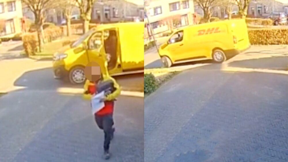 DHL-bezorger kan overstekende lantaarnpaal nèt niet ontwijken