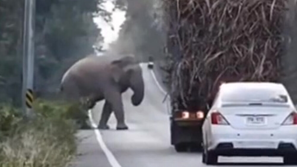 Dat olifanten intelligente dieren zijn weet bijna iedereen wel, maar deze langslurvige jongens in Cambodja maken hun reputatie volledig waar. Zij weten namelijk precies wanneer er vrachtwagens met suikerriet voorbijkomen, en gooien hun logge lichaam ervoor zodat ze rustig kunnen snacken.