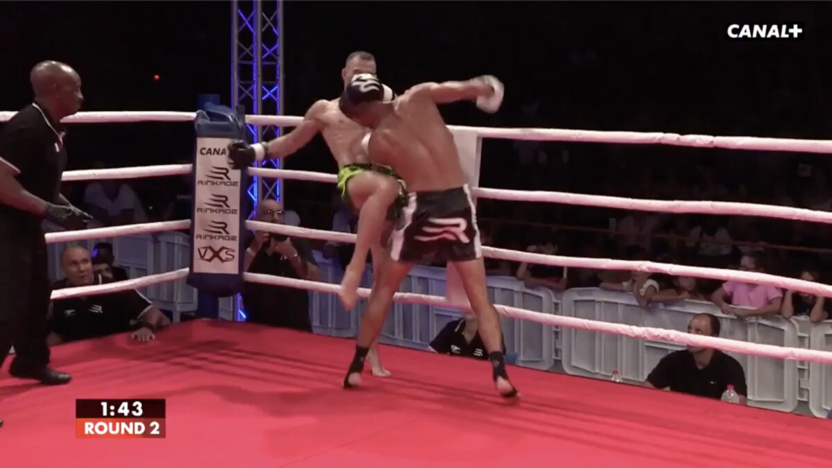 Bokser Hakim Ketaieb krijgt zo'n harde klap dat hij spontaan denkt de wedstrijd te hebben gewonnen