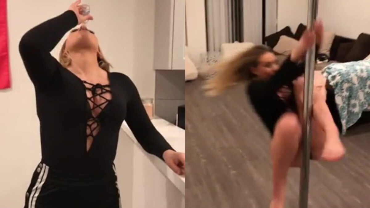 Een hele rits drankjes wegtikken en daarna sexy aan een paal gaan hangen. Wat kan er misgaan? Nou, dit bijvoorbeeld.