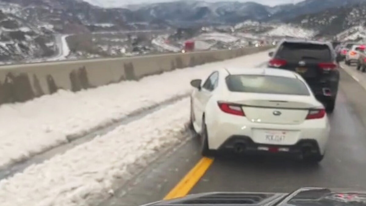 Prutser zonder winterbanden denkt nog even in te kunnen halen