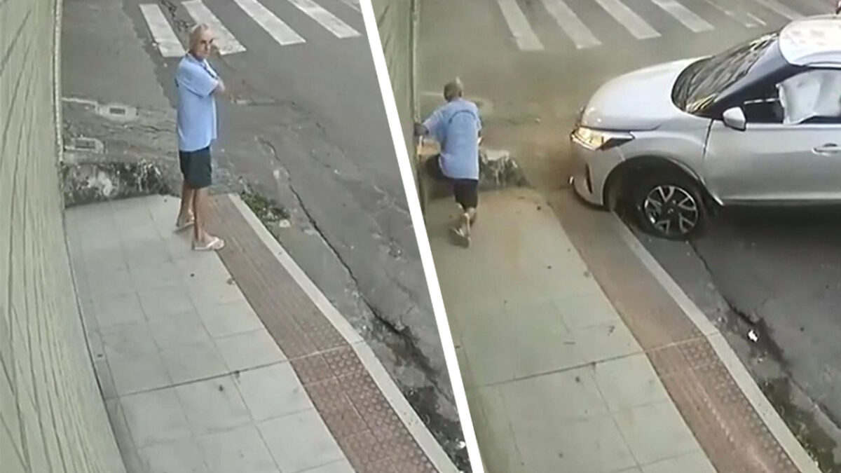 Op het laatste moment weet deze bejaarde Braziliaanse ninja een auto te ontwijken. Hij komt er ook nog eens redelijk ongeschonden vanaf, maar kan wel op zoek naar een setje nieuwe teenslippers.