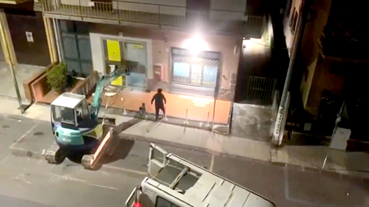 Italiaanse creatievelingen jatten een geldautomaat met behulp van een graafmachine