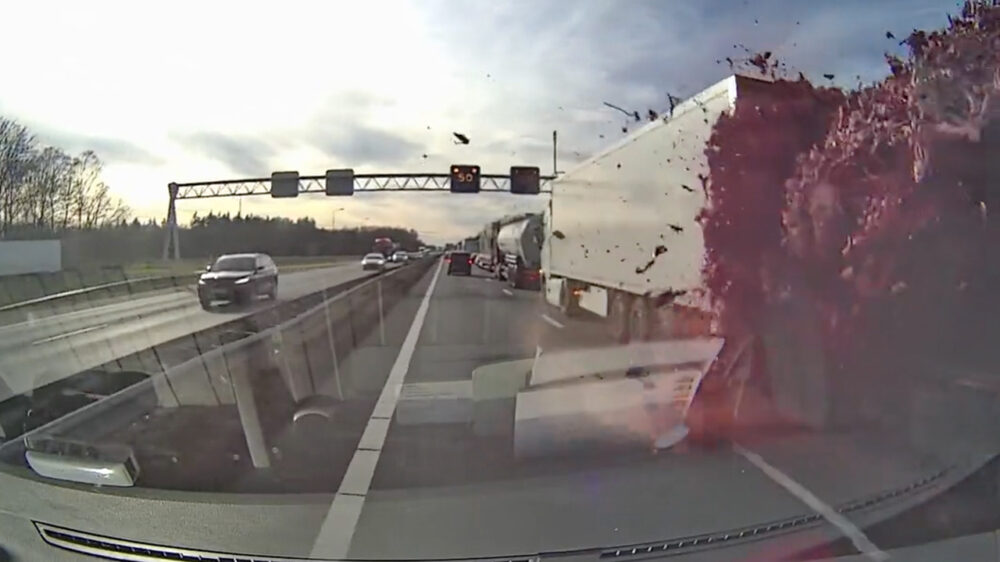 Gister was de A67 in de richting van Eindhoven is bij Geldrop even dicht. De reden was best wel ranzig: een vrachtwagen moest plotseling op de rem en verloor ongeveer 10.000 kilo slachtafval. Gelukkig reed Jeroen met zijn busje exact op dat moment voorbij, waardoor hij het moment vastlegde met zijn dashcam. Helaas kon hij daarna ook door naar de wasstraat. 🤣