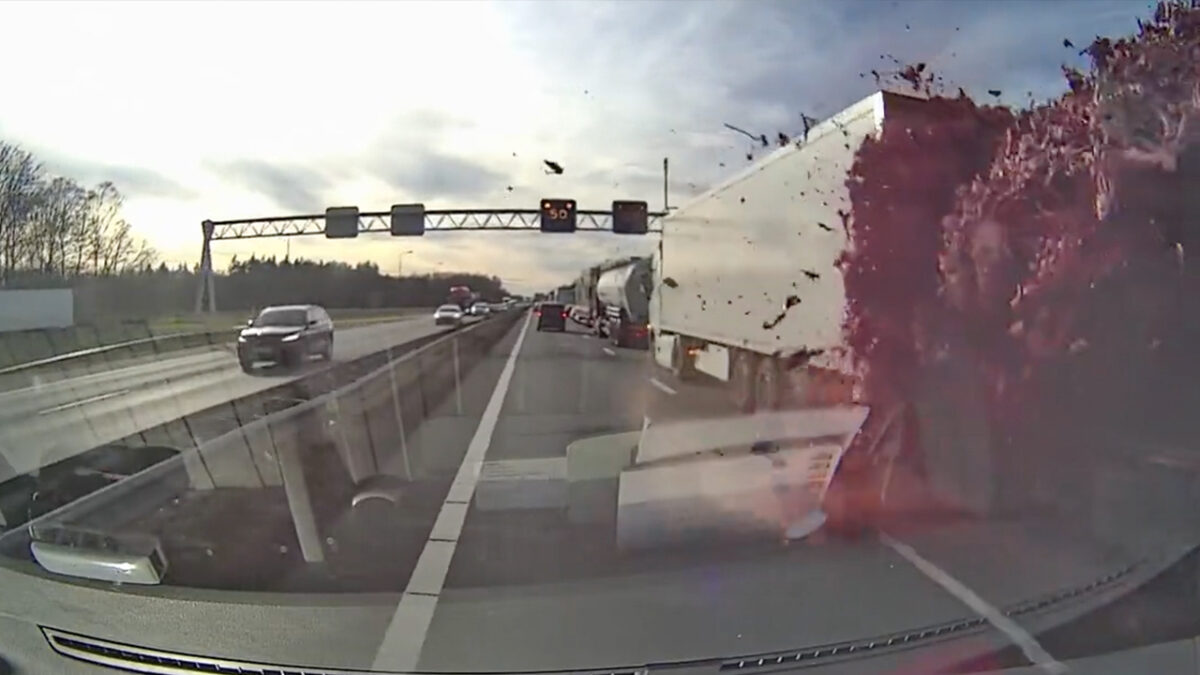 Gister was de A67 in de richting van Eindhoven is bij Geldrop even dicht. De reden was best wel ranzig: een vrachtwagen moest plotseling op de rem en verloor ongeveer 10.000 kilo slachtafval. Gelukkig reed Jeroen met zijn busje exact op dat moment voorbij, waardoor hij het moment vastlegde met zijn dashcam. Helaas kon hij daarna ook door naar de wasstraat. 🤣