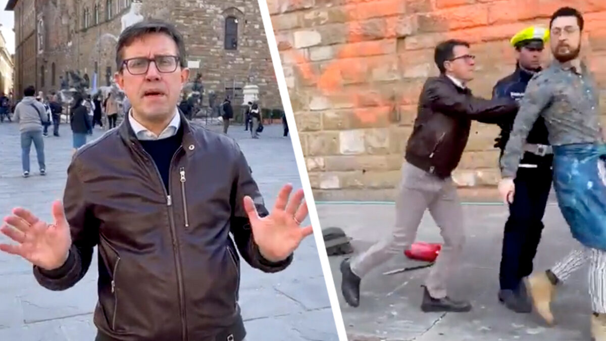 Burgemeester Florence pakt klimaatactivist aan die het Palazzo Vecchio besmeurt