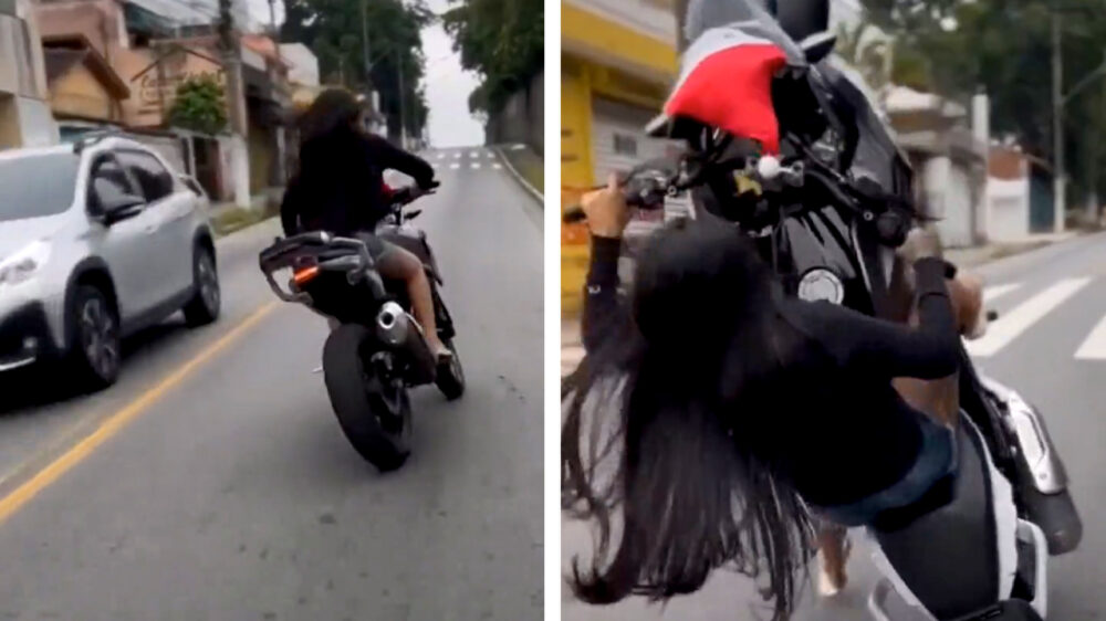 Er zijn vrouwen die steeds maar weer de behoefte hebben om zich net zo stoer (valt over te discussiëren) als mannen te willen gedragen, dus dan hoort af en toe een #wheelie eruit gooien er natuurlijk ook bij.
