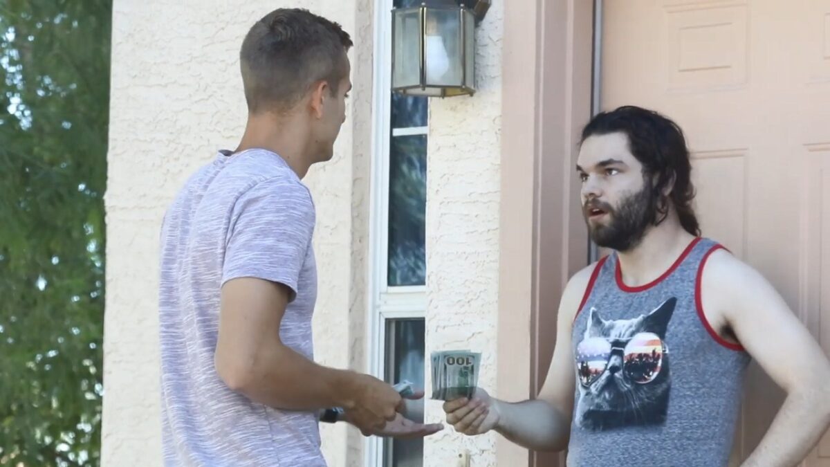 Youtuber klopt bij vreemde mensen aan en geeft ze geld om hun huur te betalen