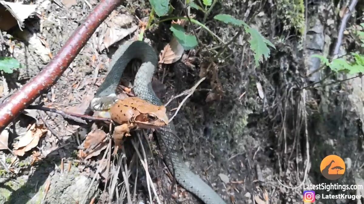 Slang slikt kikker door die uit alle macht probeert te ontsnappen