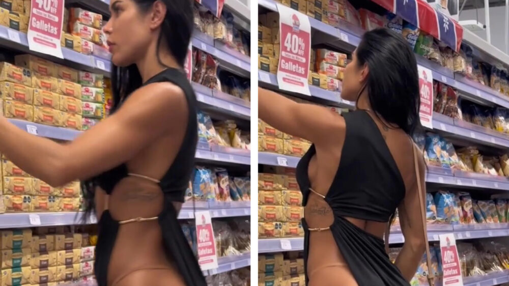 De meeste mensen trekken even snel een oud kloffie aan om gauw de boodschappen in te gaan doen, maar deze dame pakt dat net even anders aan.