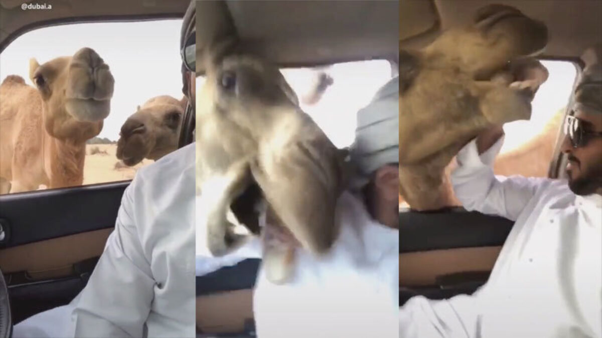 Man uit Dubai heeft meteen spijt van zijn selfie met deze hongerige kamelen Dieren