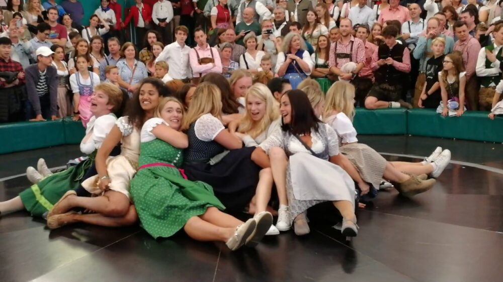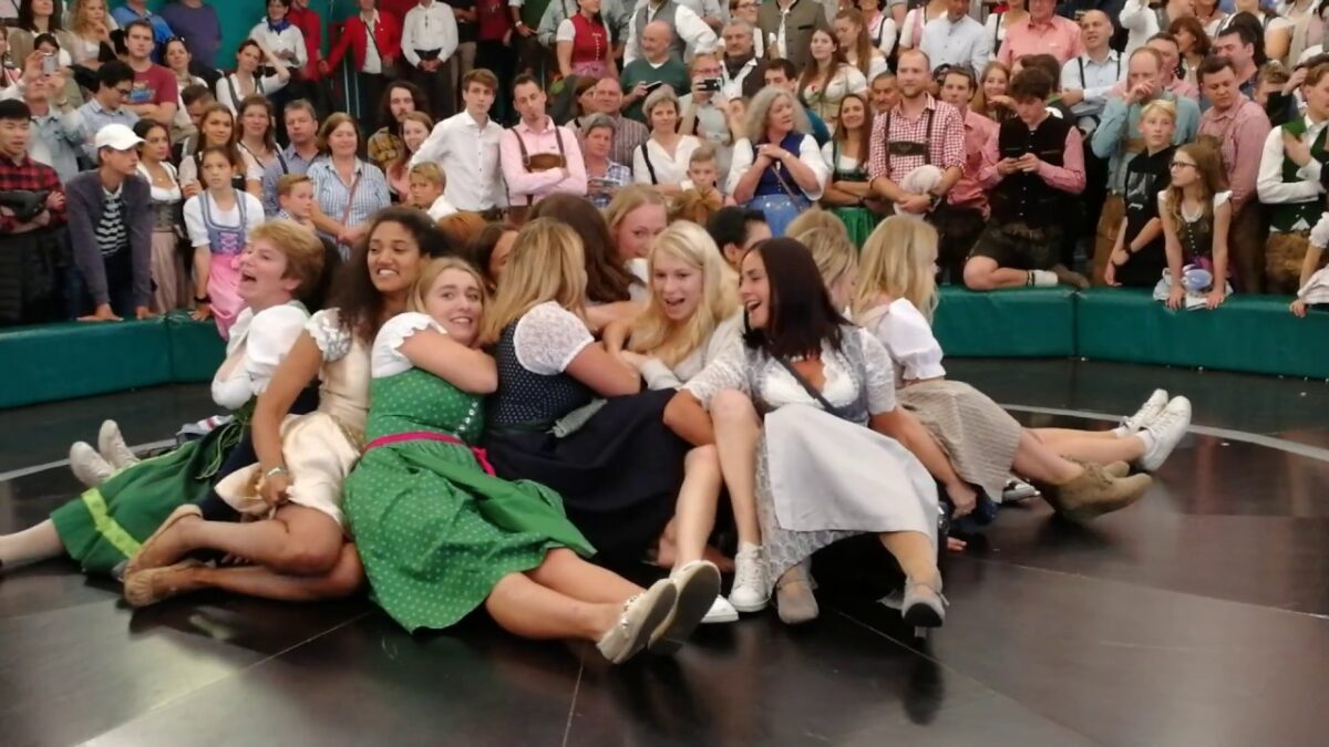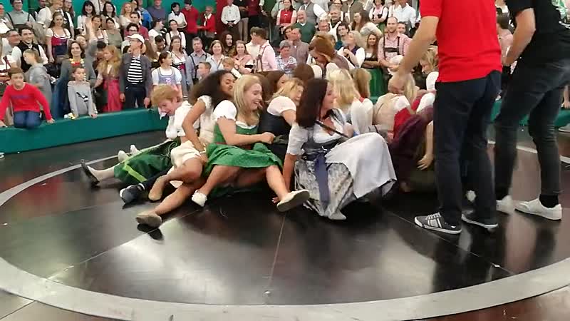 Charmante jonkvrouw in dirndl wint wedstrijdje op deze duivelse draaischijf