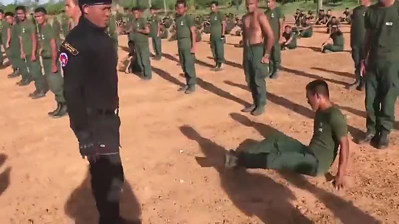 Niet zomaar iedereen kan zich bij het Cambodjaanse #leger aansluiten natuurlijk. Althans, iedereen kan zich natuurlijk aanmelden maar er is één 'trainer' die bepaalt of je geschikt bent voor de job en vandaag is het deze klas cadetten die op de proef wordt gesteld.