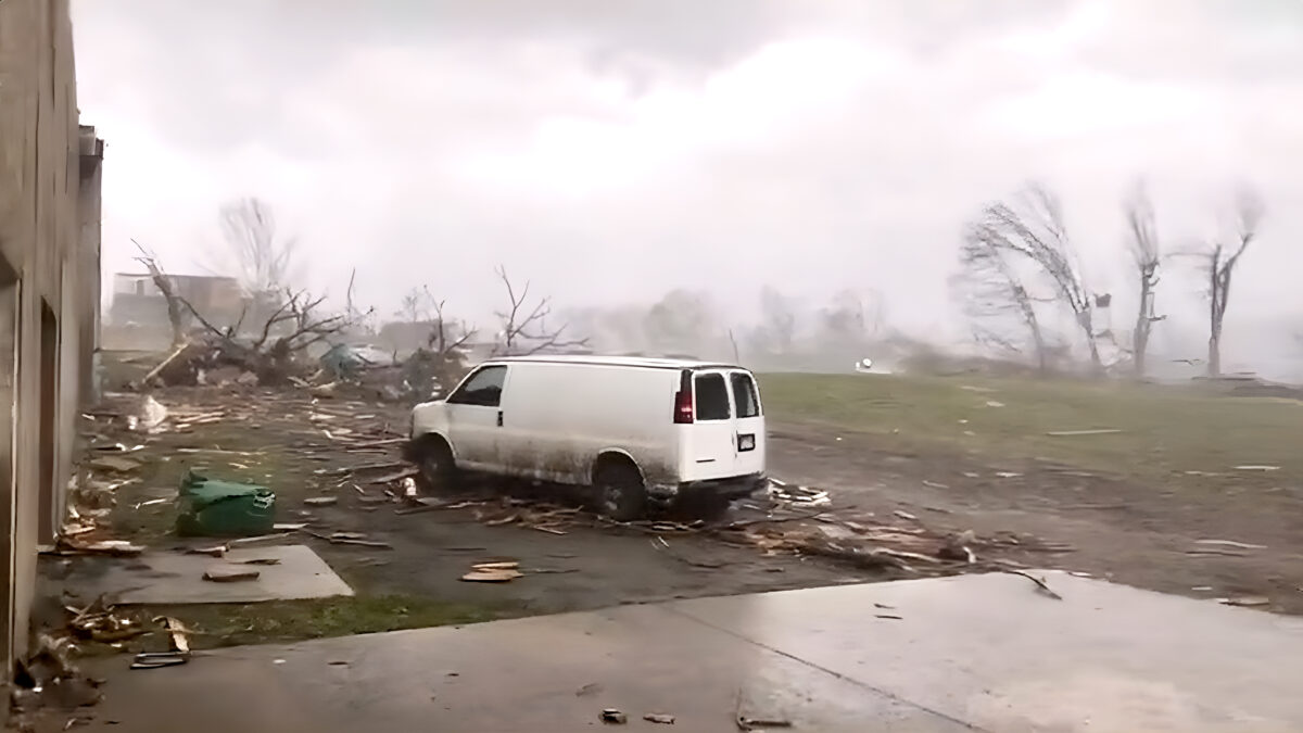 Afgelopen vrijdag is er weer een krachtige tornado over verschillende staten in Amerika geraasd waarbij ten minste 32 mensen om het leven zijn gekomen. Zo zagen we afgelopen weekend al dat het dak van een concertzaal in Illinois in elkaar stortte en als je deze video van een familie ziet die net op tijd naar hun schuilkelder kon vluchten, weet je pas echt hoe heftig het er aan toe ging.