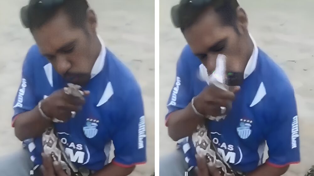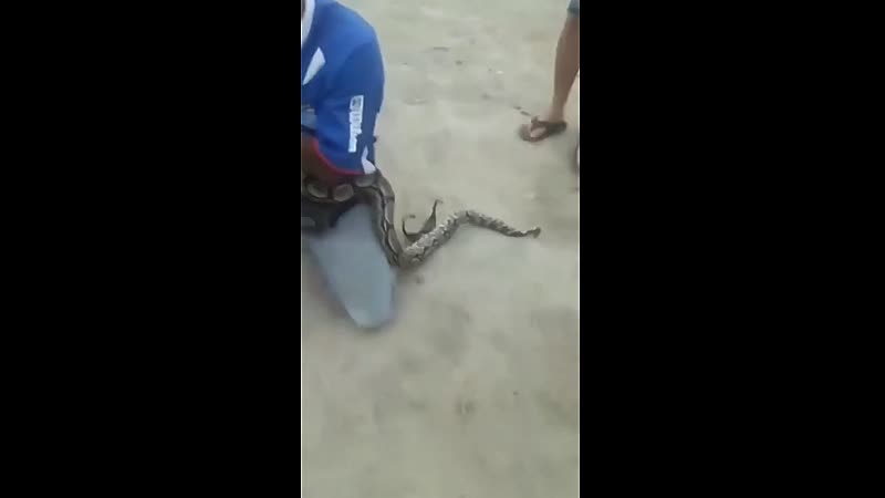 Bijna iedereen wist het al, maar deze hardleerse strandganger is er nu ook eindelijk achter dat een slang geen speelgoed is. Kusje erop?