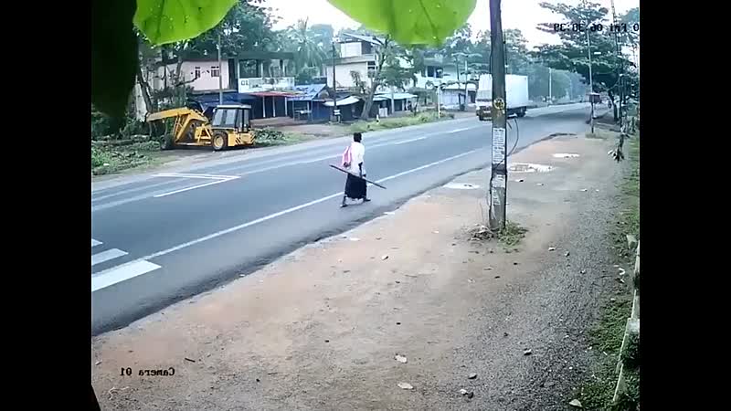 Niets te zien mensen, gewoon een voetganger die nonchalant over de weg loopt terwijl een vrachtwagen(tje) hem op het nippertje weet te ontwijken en een elektrische paal omverrijdt. Nope, India is niet voor beginners.