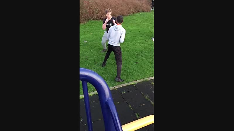 Stelletje laffe honden beuken met z'n allen één weerloze jongen in elkaar
