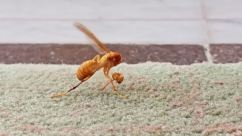 Wel eens een hoornaar gezien die zijn hoofd probeert terug te zetten?