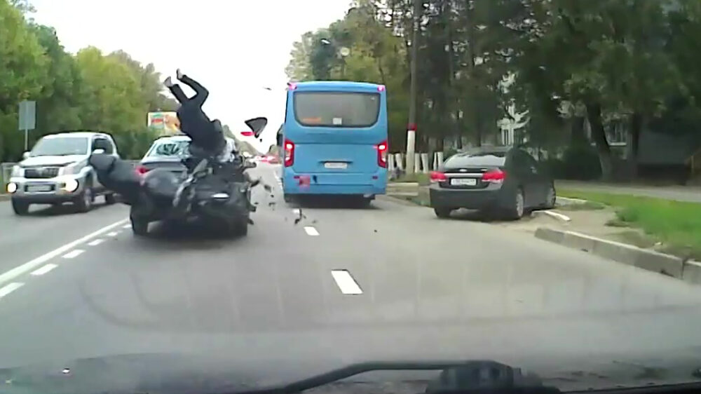 Motorrijder laat zien over het verkeersinzicht van een pelpinda te beschikken