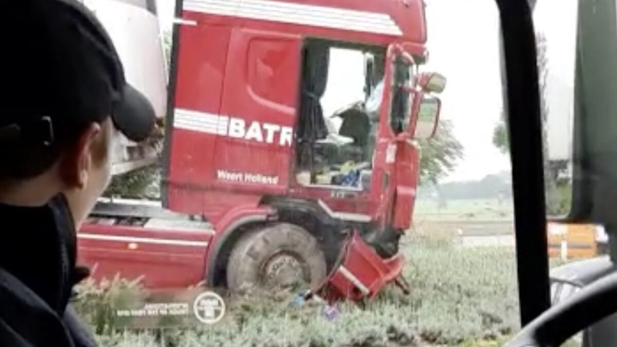 Vrachtwagenchauffeur nam "ga rechtdoor over de rotonde" iets te letterlijk