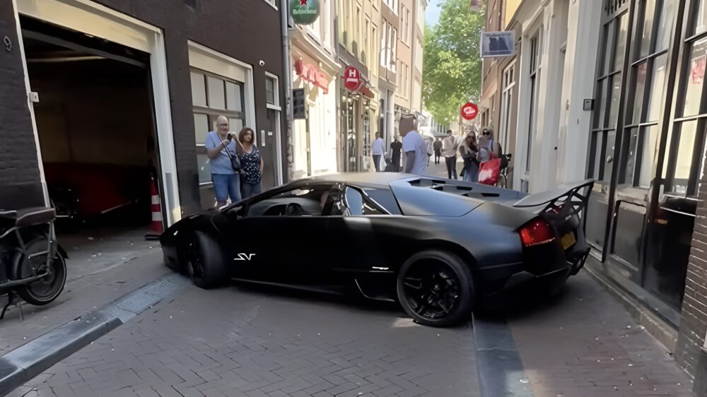In Amsterdam is het nog knap lastig parkeren met een Lamborghini Murciélago