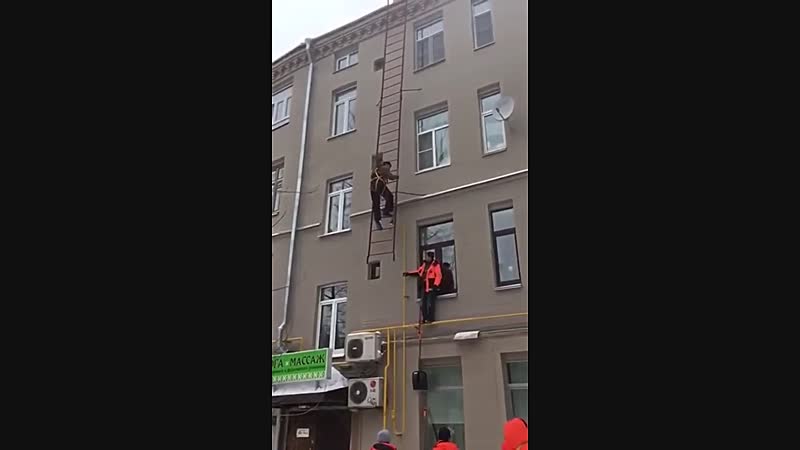 Waarschijnlijk was de ladder berekend op het gewicht van één persoon waardoor het gevaarte loskwam van de muur.