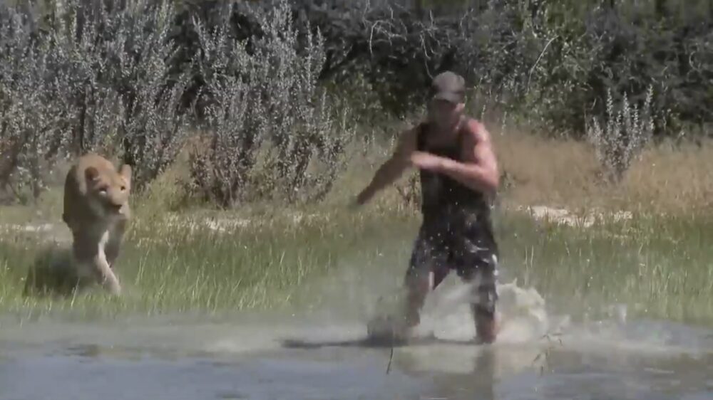 Meestal is tikkertje spelen in het wild niet echt een goed idee, maar in dit geval is het "Sirga" waarmee hij speelt dus dan zit het wel snor 🦁