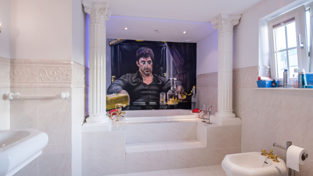 Altijd al een kitscherig huis met een schele Tony Montana boven de badkuip gewild? Dit is je kans!