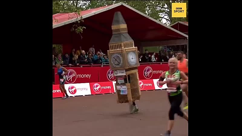 Lukas "Big Ben" Bates strandt op de finishlijn van de marathon in Londen