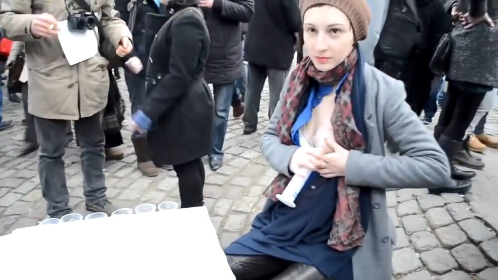Gulle moeder deelt rechtstreeks van de tap gratis proefmonsters uit Bizar