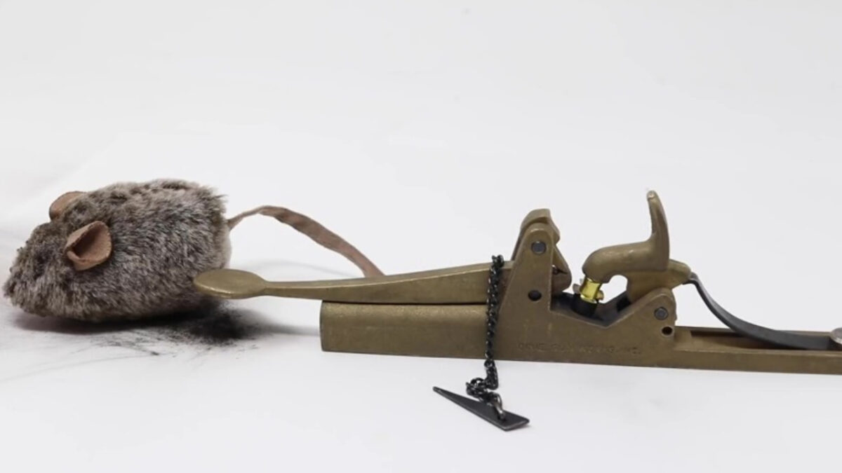 Diervriendelijke en simpele muizenvalletjes? Nee, daar deden ze in 1862 niet aan. Knallen maar!