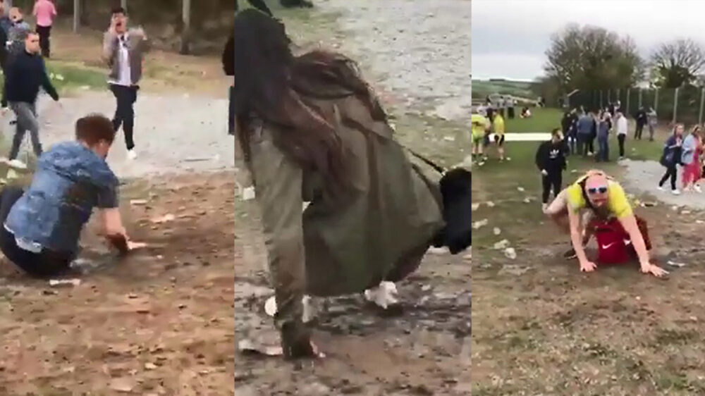 Festivalgangers vermaken zich prima door andere op hun muil te zien gaan Fun