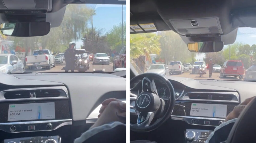 2023 in full effect: agent probeert zelfrijdende auto aan te houden