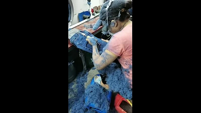 Het is al jaren retehip om spijkerbroeken met gaten, scheuren en slijtageplekken te dragen om op die manier uit te stralen dat je geleefd hebt. Denken we. Hoe dan ook, om daarin te kunnen voorzien gaat het er anno nu in de fabriek weinig zachtzinnig aan toe. Mooie broek hoor, maak maar stuk!