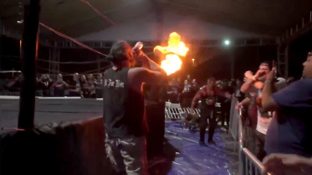 Ouch: worstelaar Masada zet zichzelf per ongeluk in brand