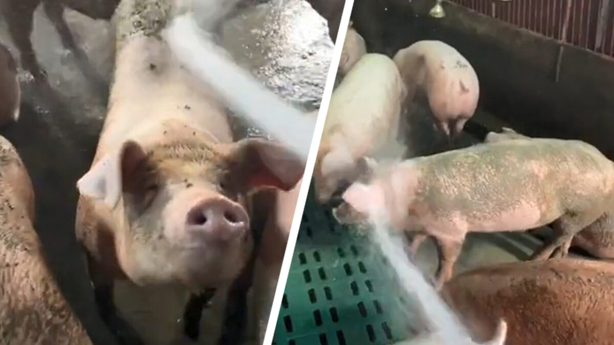 Hoewel varkens van nature schoner en intelligenter dan katten en honden zijn, hebben ze toch de reputatie van 'vieze dieren'. Dit komt vooral door de manier waarop we ze in kleine ruimtes proppen, maar met een lading water blinken ze als nooit tevoren!