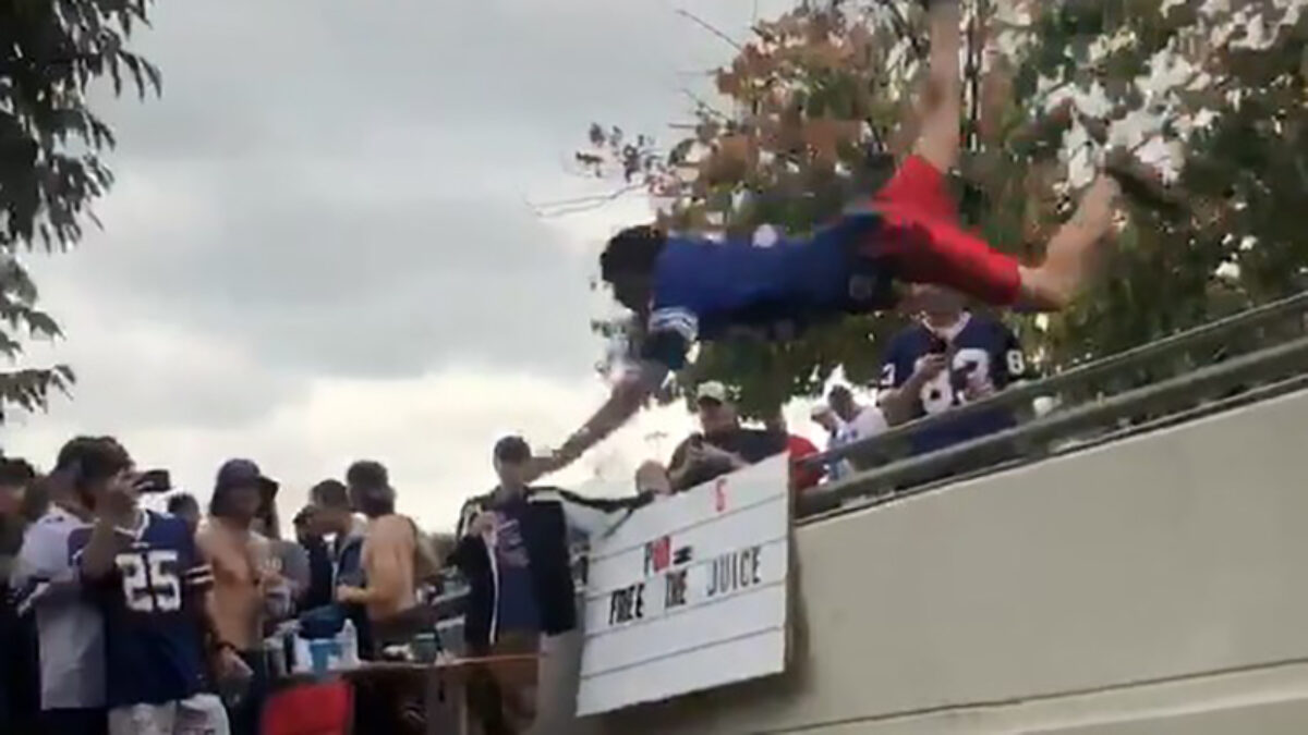 In Amerika is het voor footballfans een dingetje om door een tafel te beuken. Het zal je vast niet verbazen dat deze superman een zware hersenschudding opliep. Murica, fuck yeah.