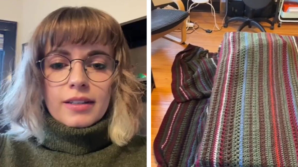 Creatieve dame heeft na een jaar werken eindelijk haar speciale deken af Random