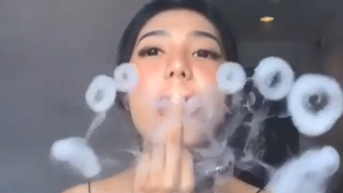 Kuch, kuch. Het nieuws dat een e-sigaret toch niet zo 'gezond' is gaat er bij haar blijkbaar nog niet in. Kuch.