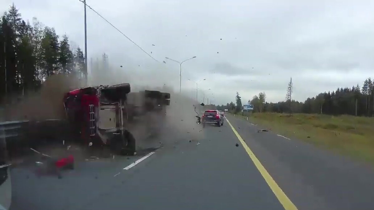 Toch wel even schrikken als je over de snelweg rijdt en er ineens een vrachtwagen op z'n kant voorbij komt zeilen... Tijd voor een schoon slipje.