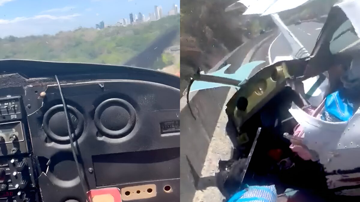 Een passagier legt vast hoe een klein eenmotorig Cessna Skyhawk-vliegtuigje op een snelweg in de buurt van Panama City een noodlanding moet maken. Gelukkig was het juist toen een feestdag en was de weg relatief leeg. De drie passagiers en hun piloot werden voor slechts wat lichte verwondingen behandeld.