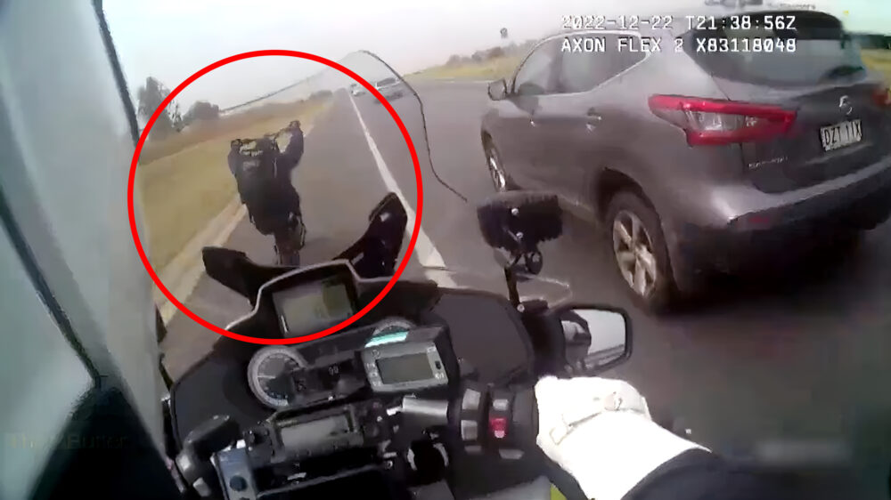 Beelden vrijgegeven van Australiër die met 100 km/u over de autoweg stept