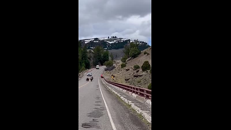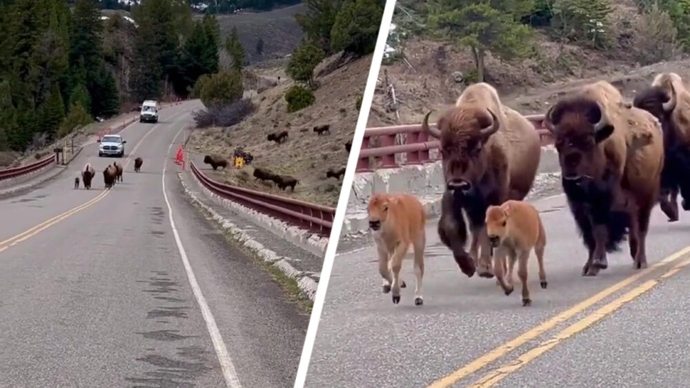 Ooit al eens op de rem gemoeten voor een familie bizons?