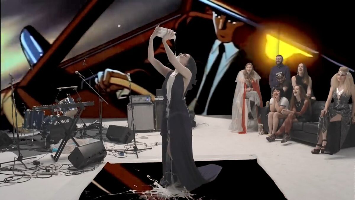 Kunstenares heeft aan een pot verf genoeg om een artistiek optreden te geven Bizar