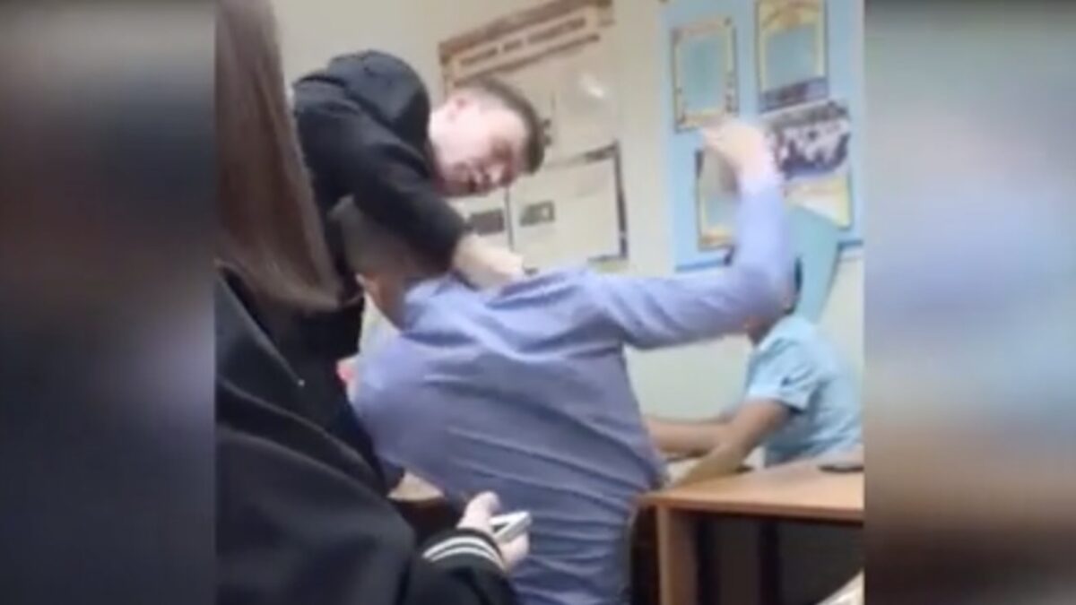Overspannen Russische leraar geeft de hele blyat klas op zijn sodemieter
