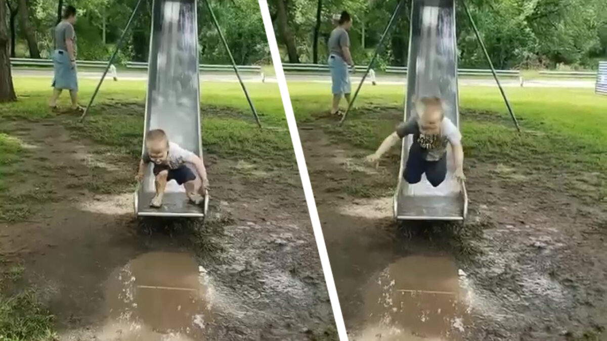 Nee hoor mama, ik kan makkelijk over die plas springen! Fails